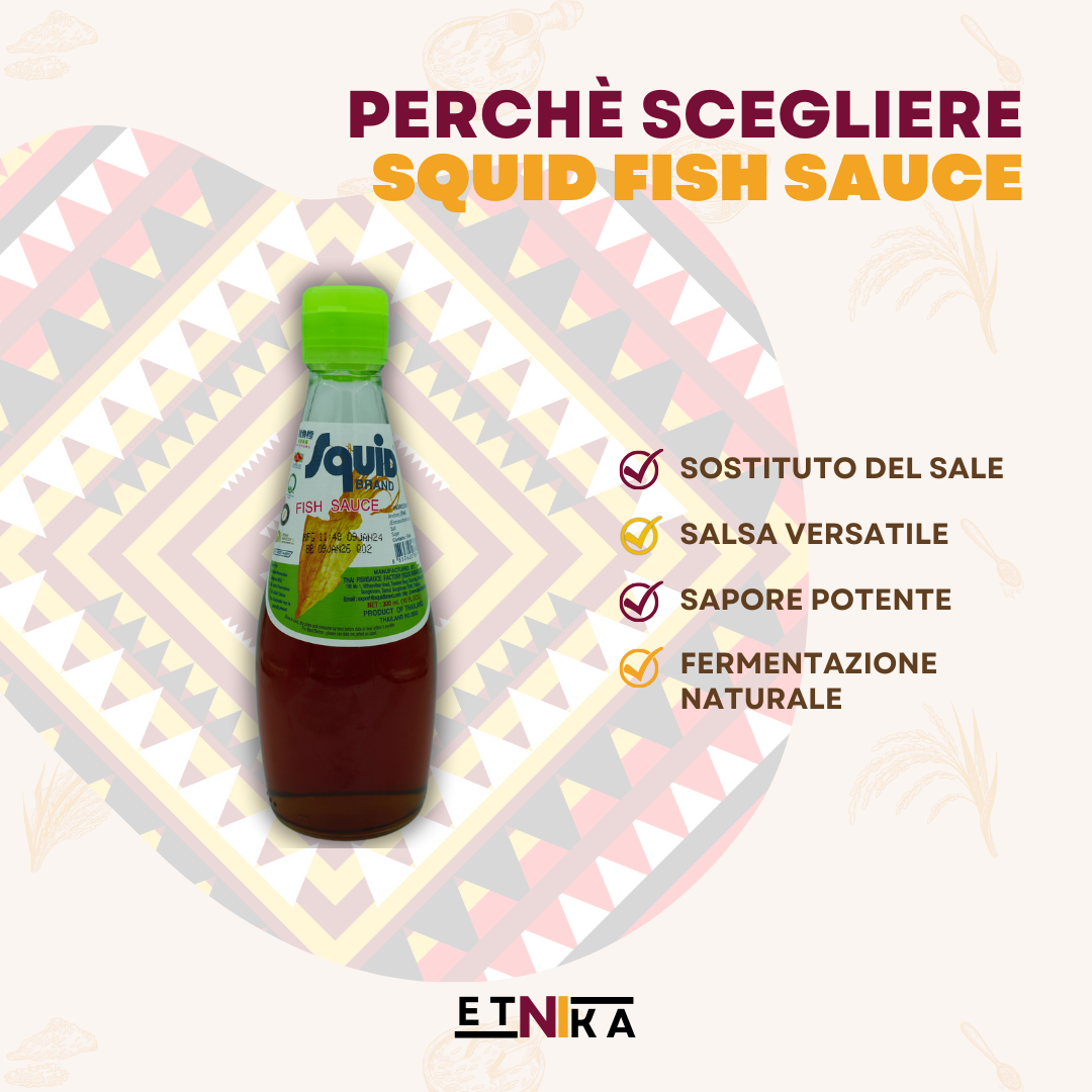 La Squid Brand Fish Sauce è un condimento essenziale nella cucina indocinese, che aggiunge profondità di sapore a zuppe, curry e piatti a base di pesce.